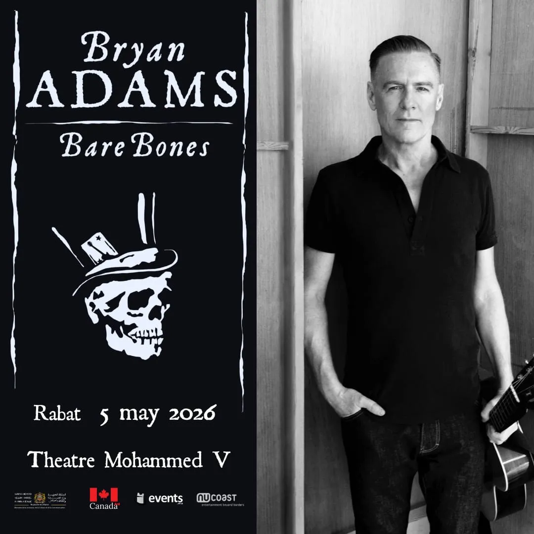 Bryan Adams is coming to Rabat with his « Bare Bones » tour! The legendary Canadian rocker invites you to an intimate acoustic evening on May 5th, 2026 at the prestigious Theatre Mohammed V in Rabat. Rediscover his greatest hits in a stripped-down, authentic version – just Bryan Adams, his guitar and his iconic voice. A unique and unforgettable musical experience with one of rock’s most iconic artists. Book your tickets at events.ma!