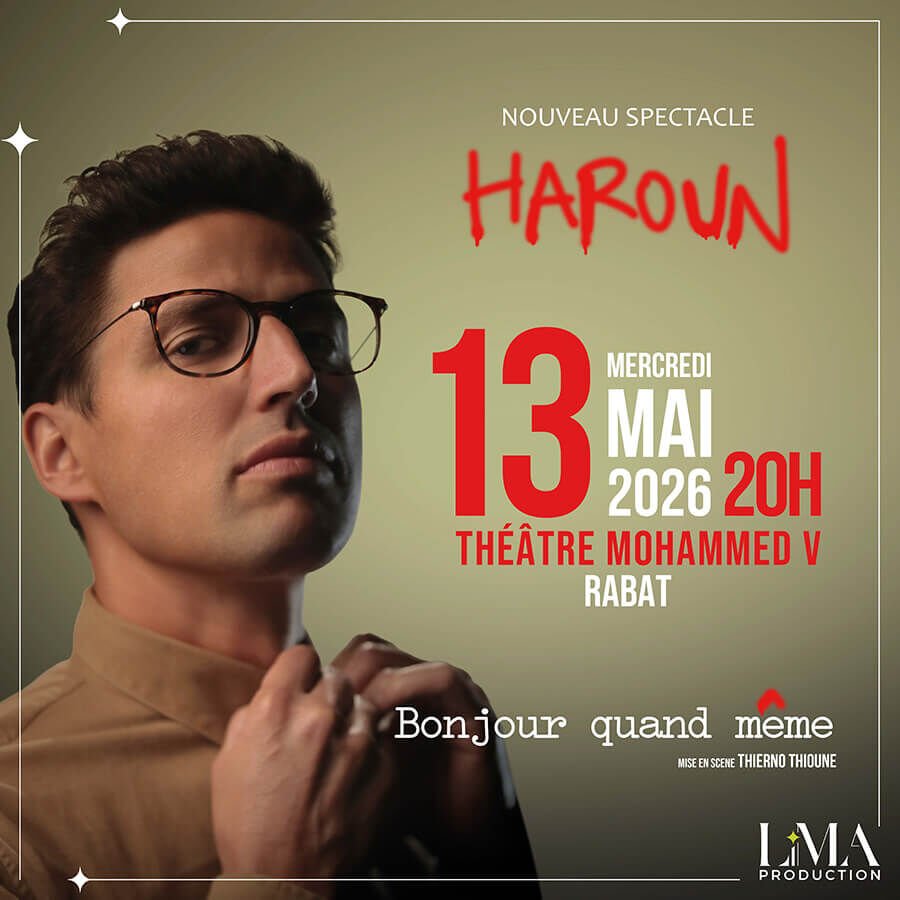 Avec cinq one-man shows à son actif, Haroun connu pour son humour subtil et incisif revient avec son tout nouveau spectacle intitulé « Bonjour quand même ».